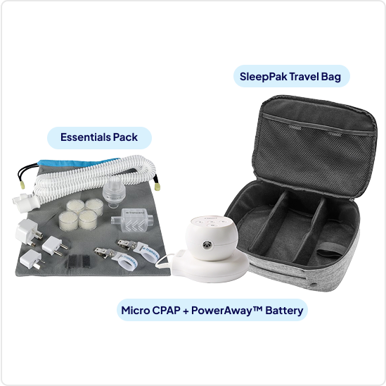 Stop compromising on sleep when you travel. The Transcend Micro™ Power Bundle is the ultimate all-in-one solution for on-the-go CPAP users. It pairs the world’s smallest CPAP machine with the powerful Transcend Micro PowerAway™ Battery, ensuring you get restful, uninterrupted therapy anywhere—from a red-eye flight to a remote campsite.